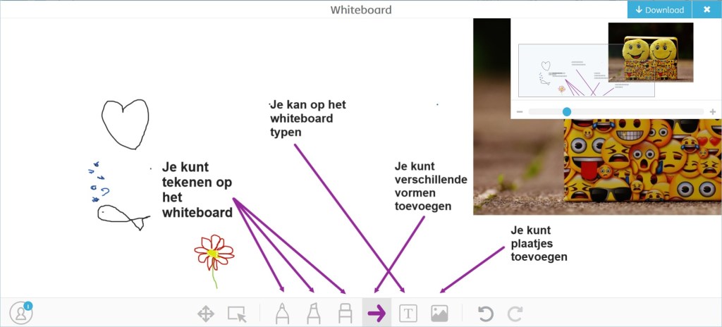 Binnen Teams heb je ook een Whiteboard functie, maar hierin kan je niet typen en moet je je muis of iets dergelijks gebruiken om krabbels te maken op je Whiteboard. Binnen Stormboard kun je gewoon typen en dus makkelijk gebruik maken van het Whiteboard.